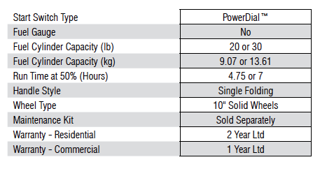 No other portable generator - propane or gasoline fueled - has all startup essentials on a single dial, with easy-to-follow instructions. Prime, choke, start and shutdown are conveniently located together for quicker startup, essential in an emergency.