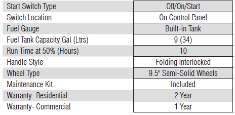 Single touch electric start, battery included, provides hassle-free start-up.