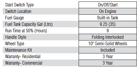 Electric start with battery included.