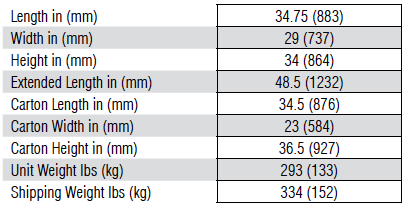 Durable construction with oversized full-wrap frame tubing and impact resistant corners minimizes damage from rough handling.
