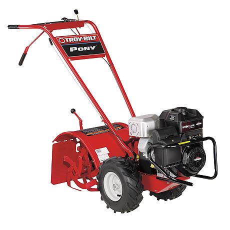 Our Pony rear-tine rototiller with its dependable engine, tough cast-iron transmission and forward-rotating Bolo tines are just a few of the reasons that the Pony will power through your tilling and soil preparation chores for many seasons to come.